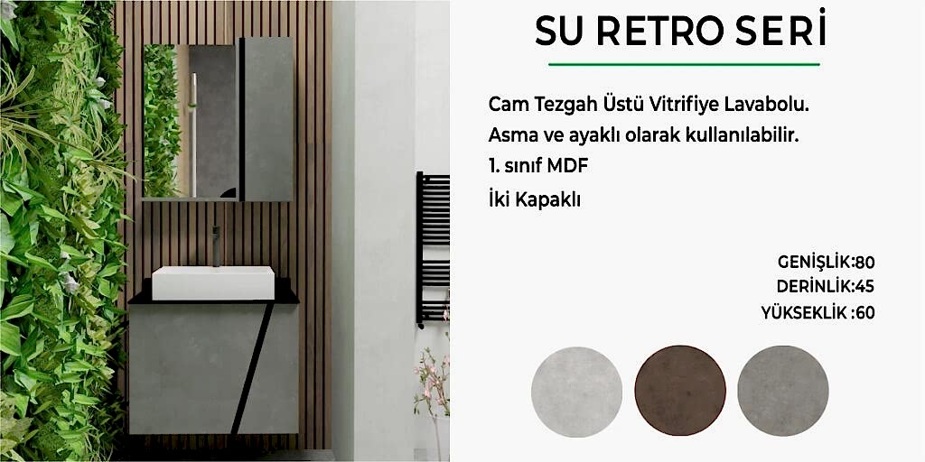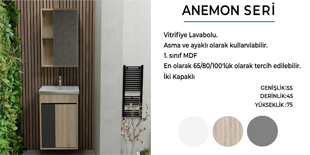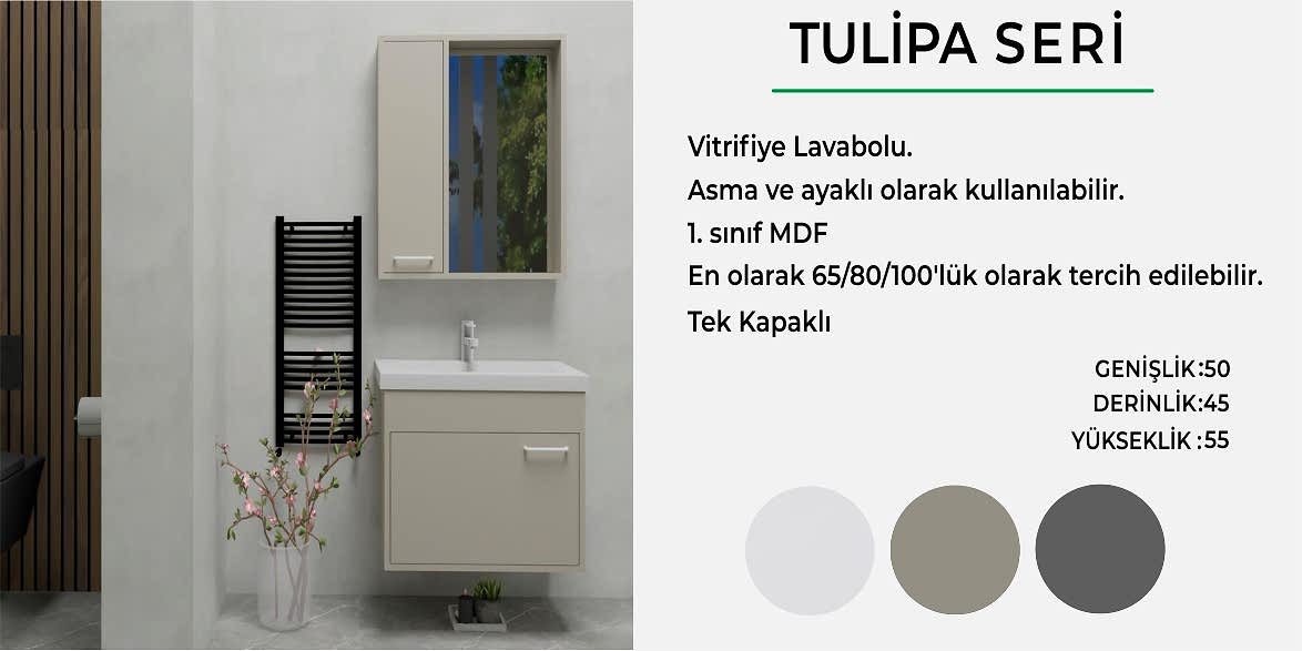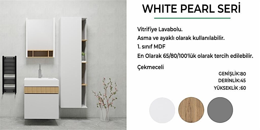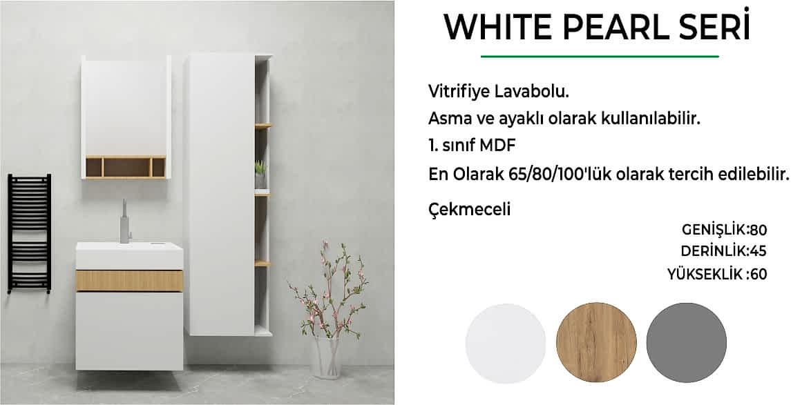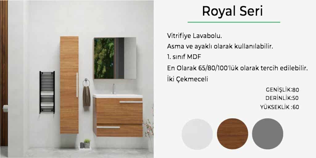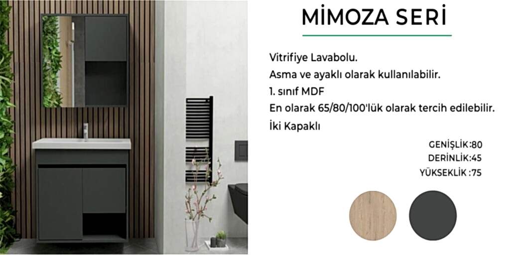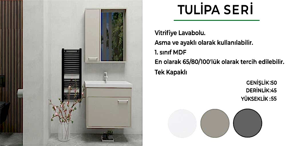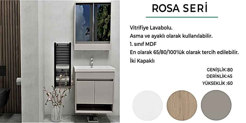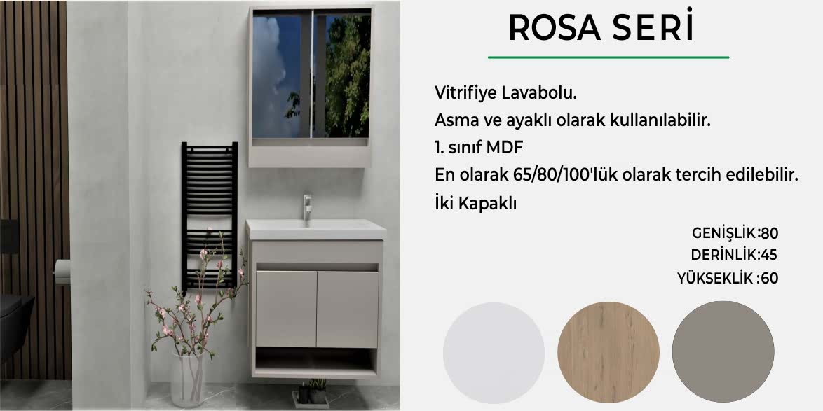 Firmamızda üretilen Banyo Dolapları E1 normundaki 1. Kalite MDF’ den üretilmektedir. Banyo Dolaplarımızda kullanılan tüm aksesuarlar paslanmaz olup standart veya özel üretim şeklinde yapılabilmektedir. Aynı şekilde minifix sistemli veya vidalı olacak şekilde üretim yapılabilmektedir. Kullanılan kenar bantları 1mm olup PVC den mamuldür. Üretimde kullanılan tüm makinalarımız yeni olup en iyi markalardan oluşmaktadır. Sitemizde gördüğünüz standart Banyo Dolaplarımız dışında özel olarak tasarlanmış dolaplarımızda bulunmaktadır. Dolaplarımızda kullandığımız vitrifiye lavabolar 1.Kalitedir. Banyo alt dolaplarımız gizli kulplu veya metal kulplu ve çekmeceli olarak üretilmektedir. Üst dolaplarımızda kullandığımız aynalar 1.sınıf olup tamamıyla bizotelidir.